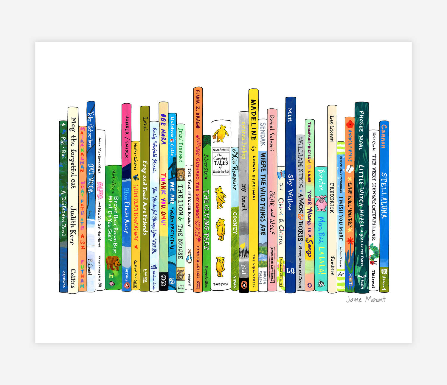 All new prints of picture books for kids! This is one of two (with Ideal Bookshelf 1220: Kids), featuring books by all different sorts of authors for all different sorts of kids, new classics and old. Gift one that includes your favorites, or hang both on a nursery wall.