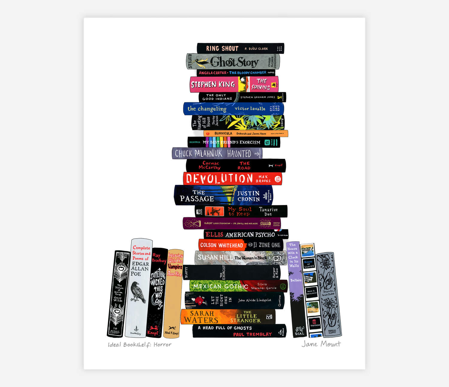 “That’s when I started Ideal Bookshelf, and began doing custom pieces for people, painting portraits of them from the inside instead of the outside. I find it endlessly fascinating to see what books people pick, and while painting or making a print I think all about what that person might be like, based on their choices.”
