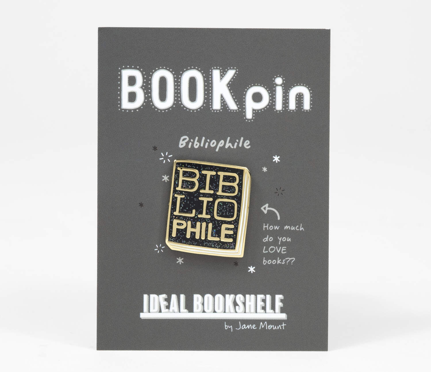 Show your true self, as a bibliophile, with this glittery iridescent black pin, made for the launch of Jane's new book Bibliophile in September 2018 from Chronicle Books.