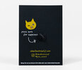 This badge is a hard enamel lapel pin with raised gold-plated outlines. It's about 1 inch tall by 0.75 inches wide, and attaches to your clothing with a black rubber clutch. It ships pinned to a small cardboard plaque in a cellophane envelope.
