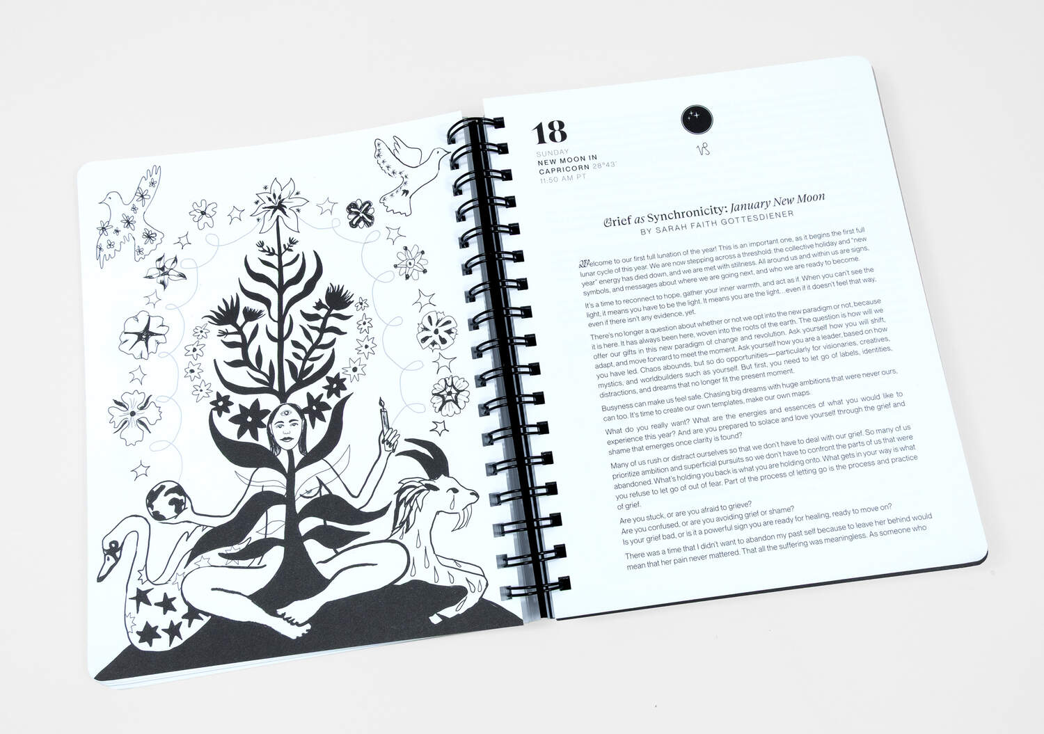 Over 13 different writers, artists, witches, and magical practitioners have written exclusive essays on how to harness the varying themes and essays of 2024 through the New and Full Moons.