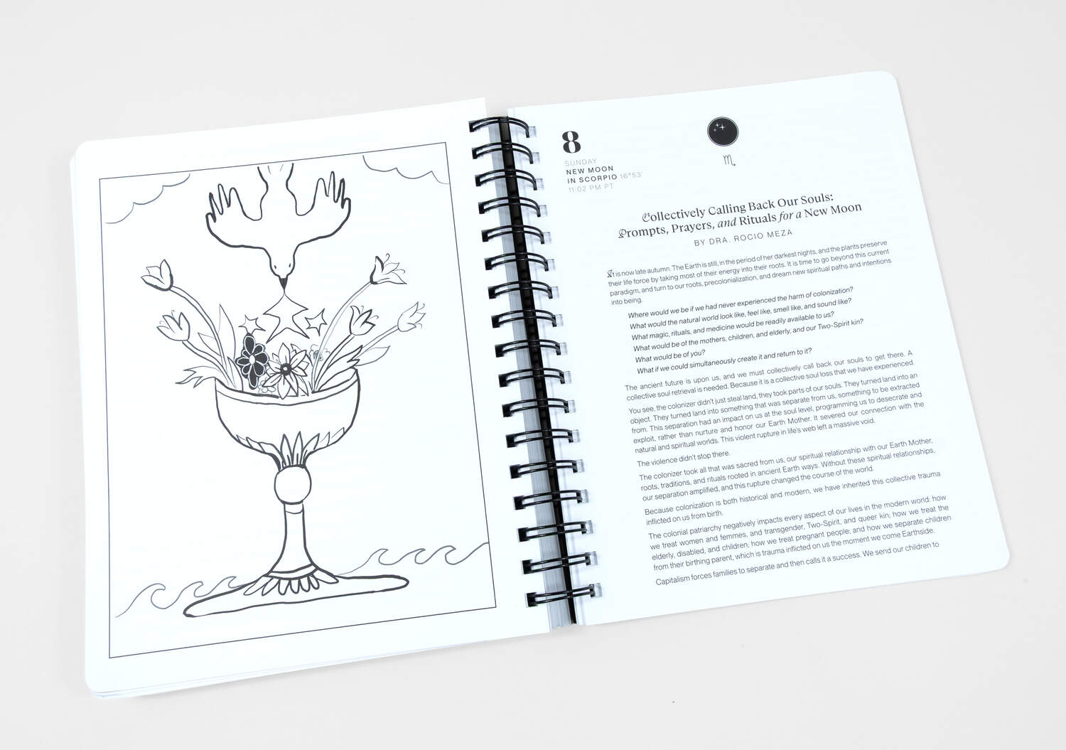 Our contributors include Liz Migliorelli of Sister Spinster, Sanyu Estelle, astrologer Anthony Perrotta, Dori Midnight, Mimi Zhu, Jonah Welch, Maria Minnis, Chaweon Koo, Kelechi Okafor, Chelsea Selby, Missing Witches’ Amy Torok and Risa Dickens, Sebene Selassie, and Gabes Torres.
