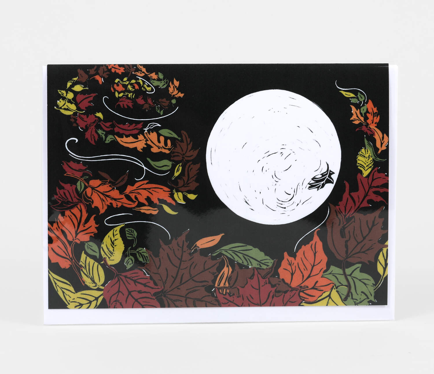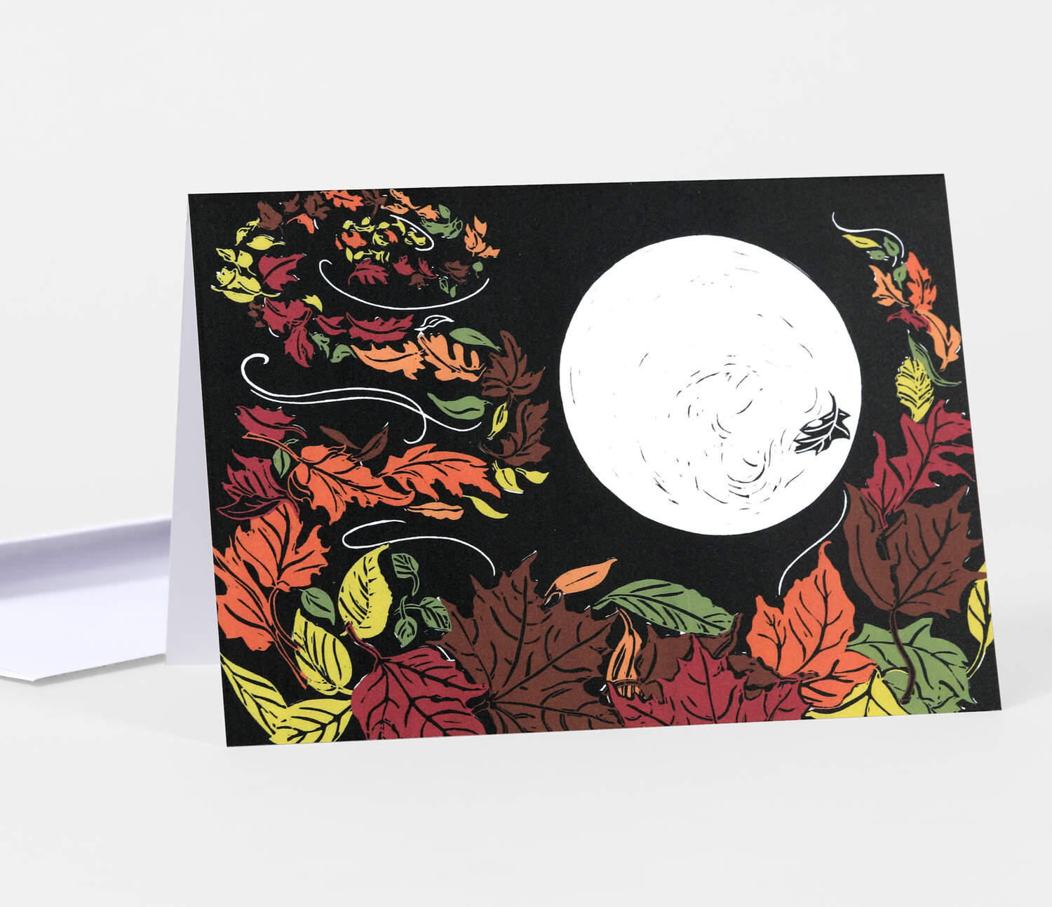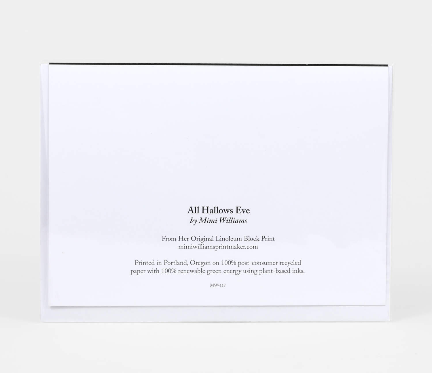 Mimi carves each of her striking images in a linoleum block, then impresses the inked carving onto the paper using the back of a wooden spoon.