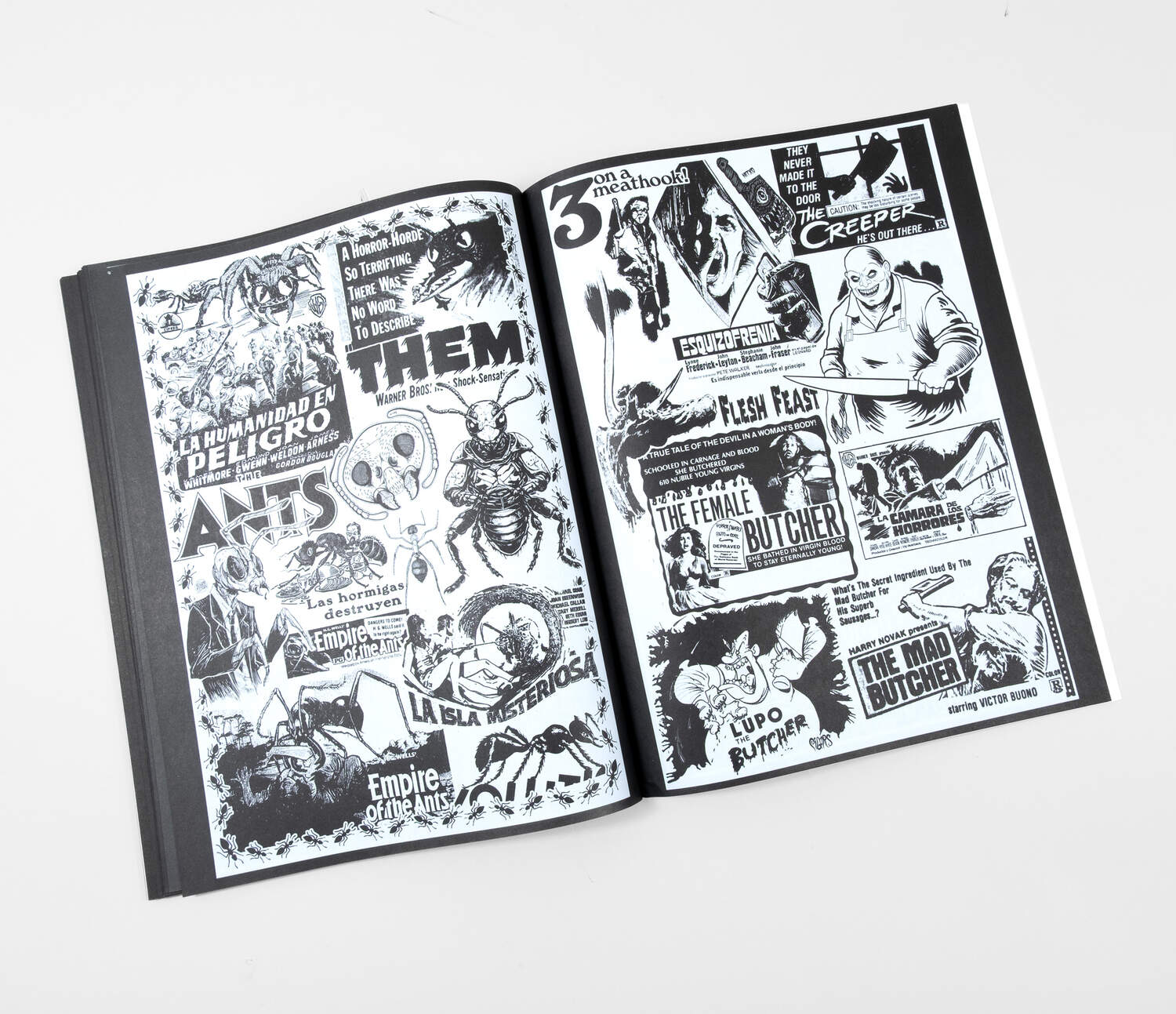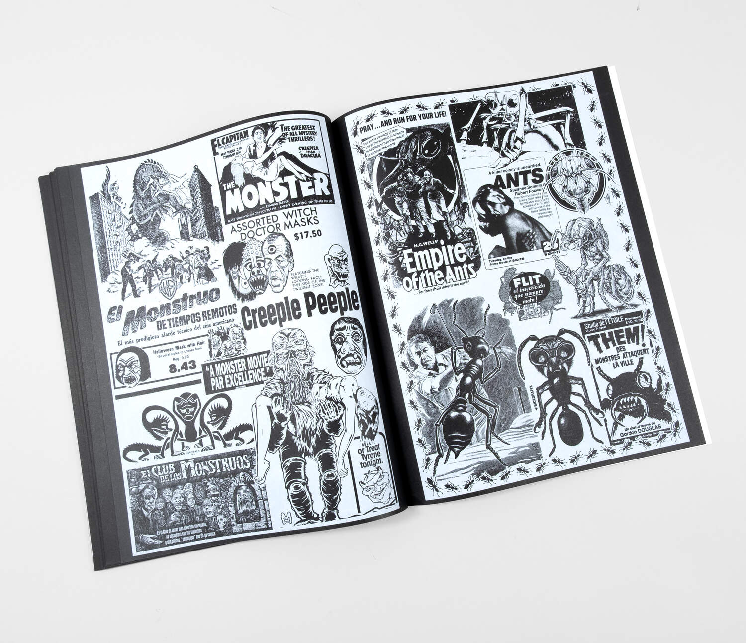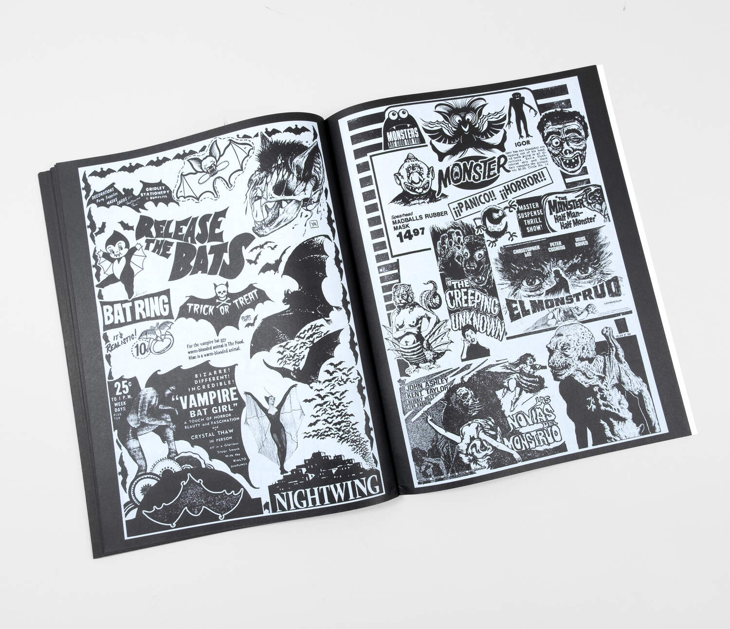 With a cover featuring Frankenstein’s creature slinging newspapers from a kiosk window, this edition of Monsterama pays homage to the forgotten glory of street kiosks, the chaotic shrines of tacky treasures and bootleg monsters.
