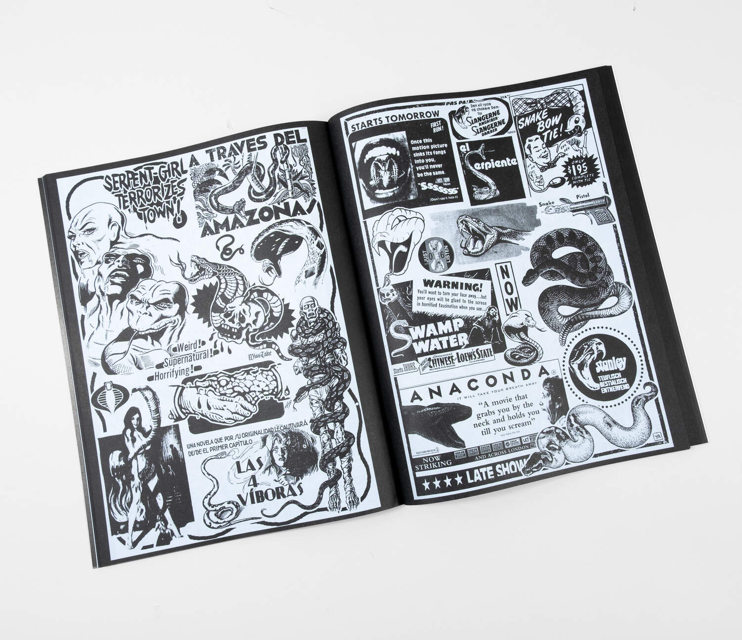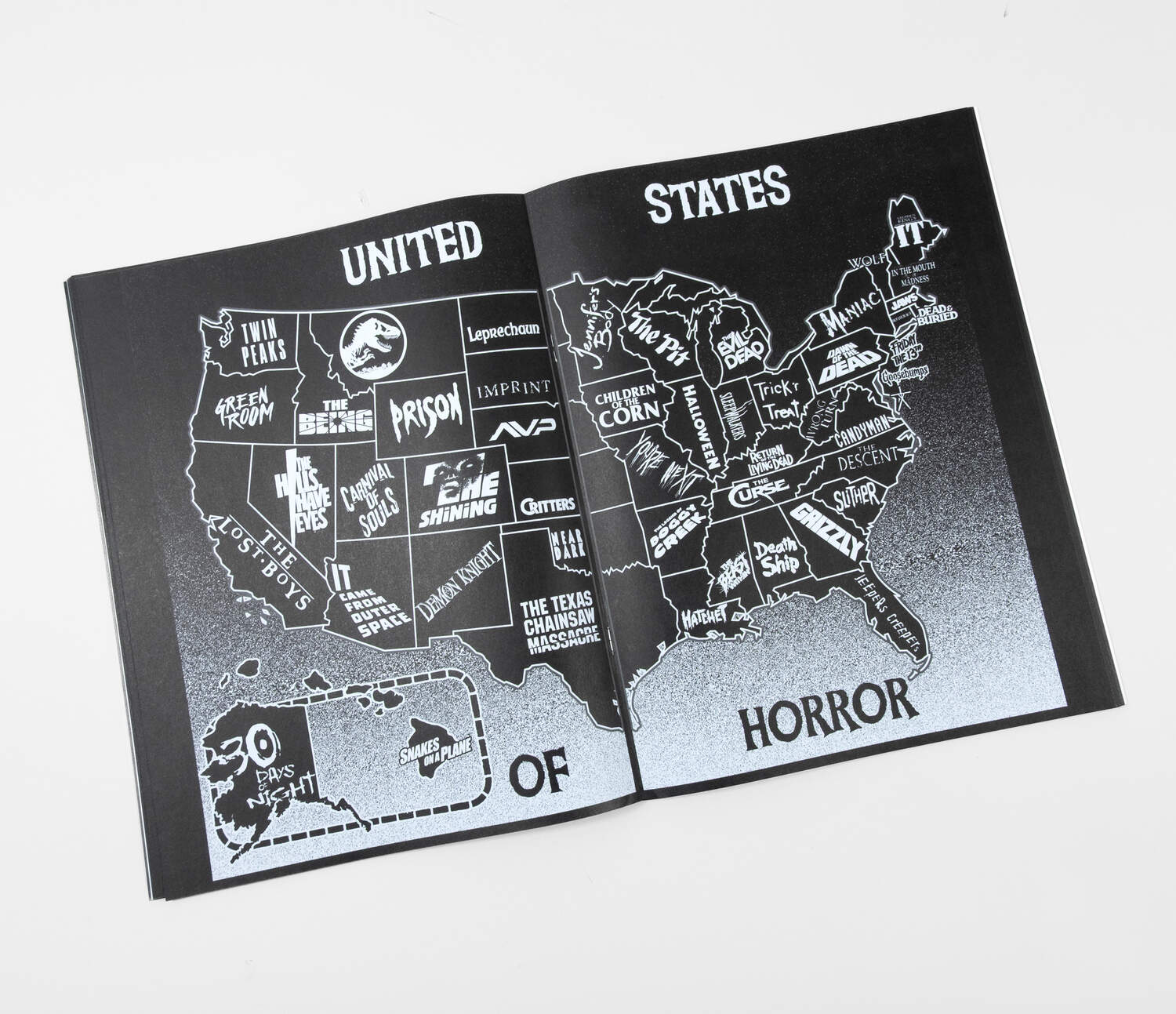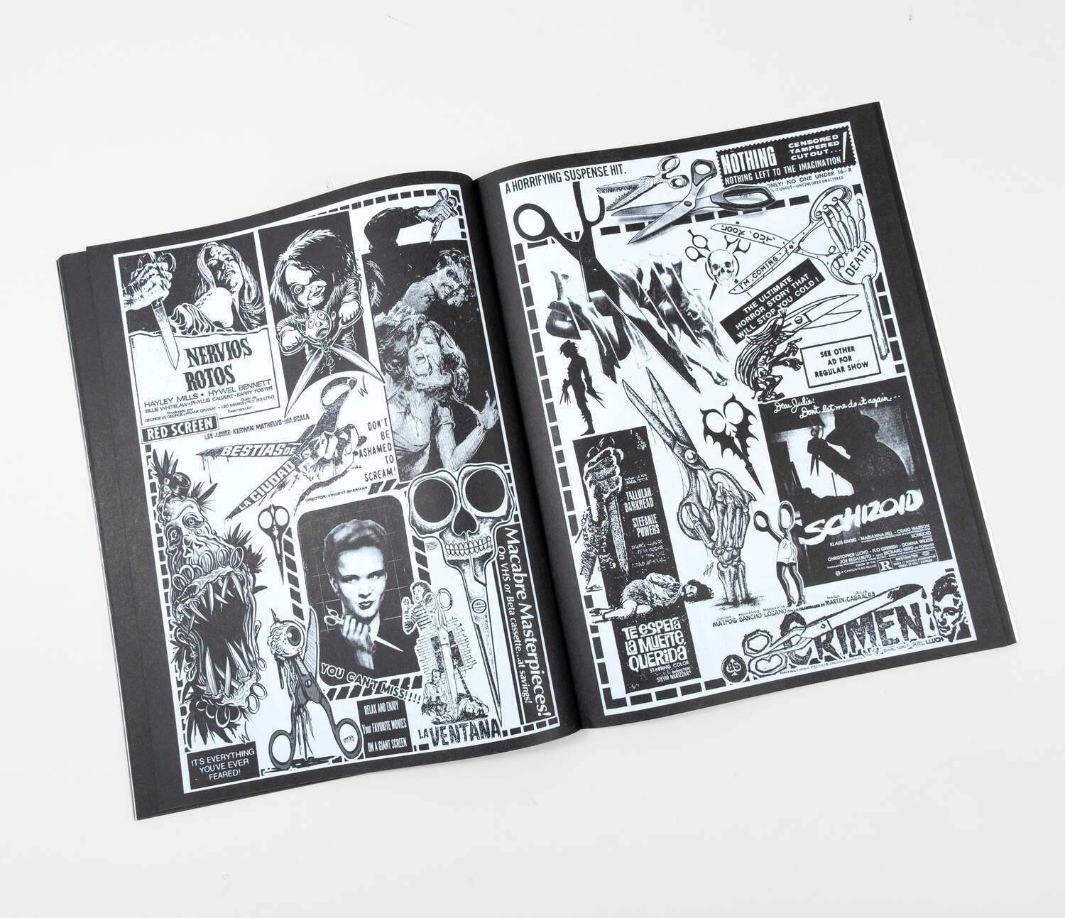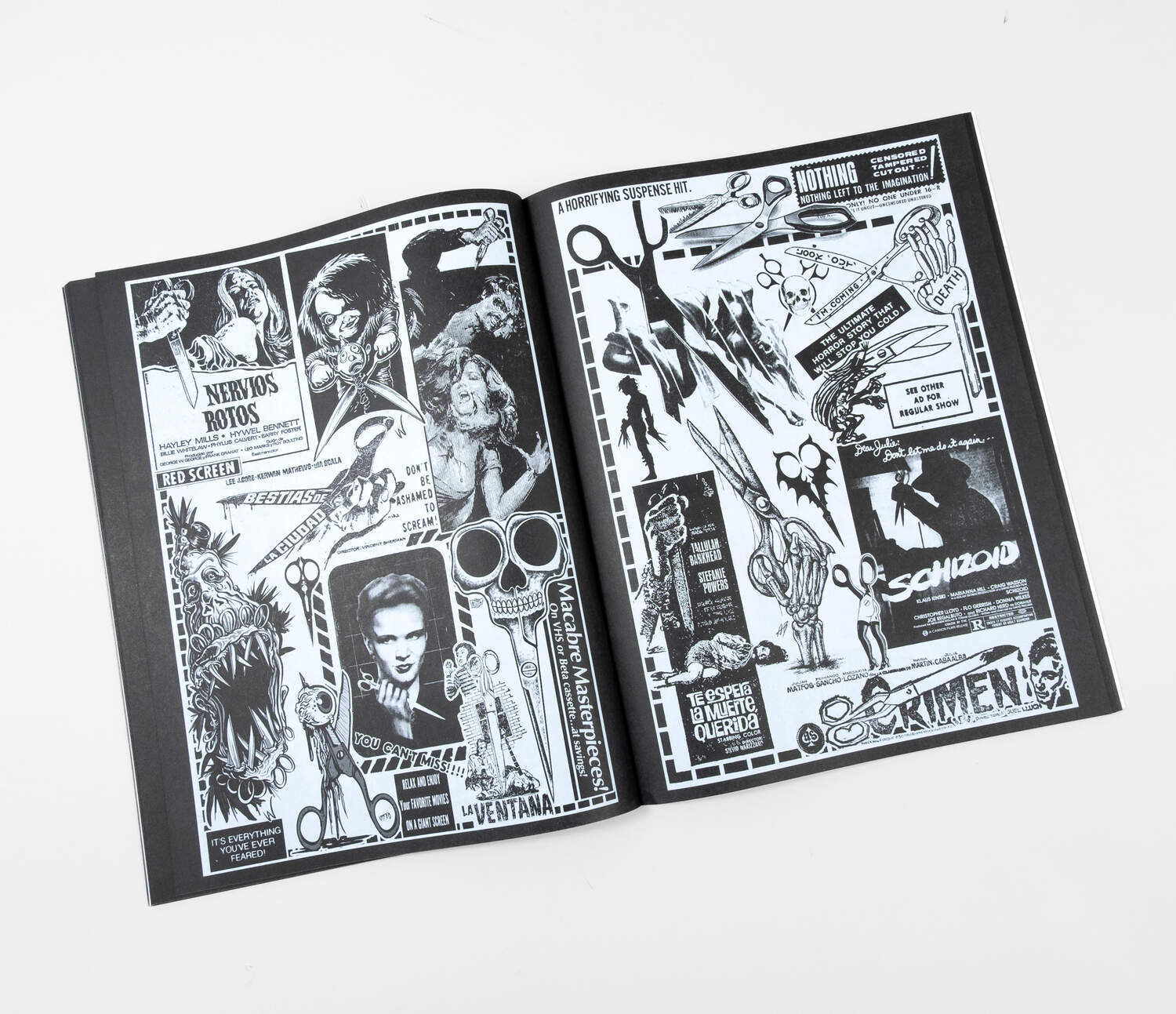 With a cover featuring Frankenstein’s creature slinging newspapers from a kiosk window, this edition of Monsterama pays homage to the forgotten glory of street kiosks, the chaotic shrines of tacky treasures and bootleg monsters.