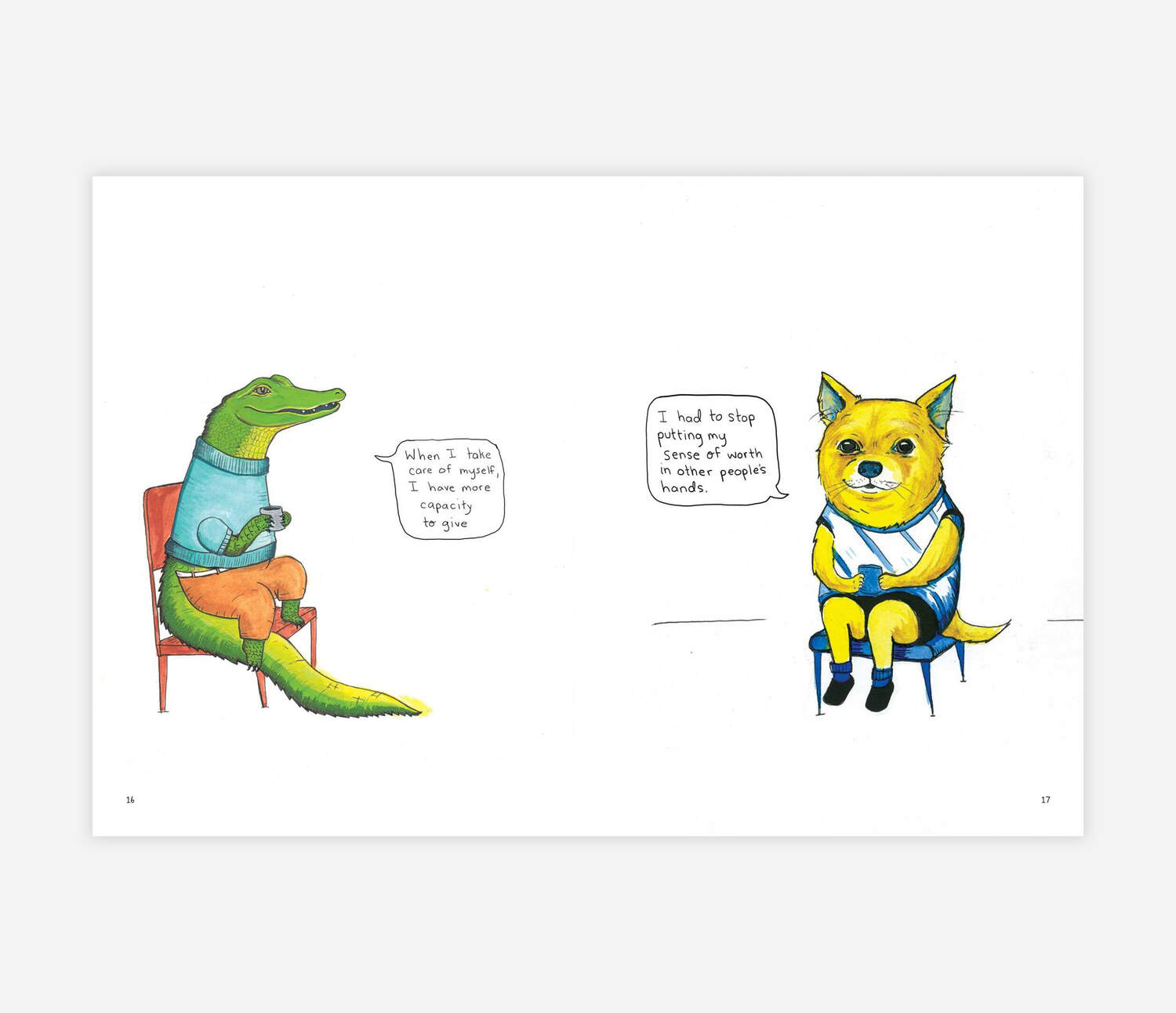 From a cardigan-wearing walrus sipping a cup of coffee, to a crocodile reminding you that when you take care of yourself, you have more capacity to give — this book is proof that hard truths are easier to digest in an adorable package.