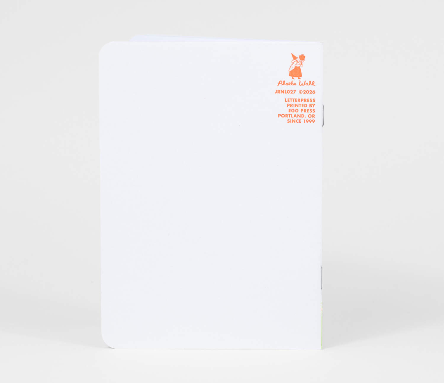 A softcover saddle-stitch notebook with vibrant letterpress-printed wraparound cover.