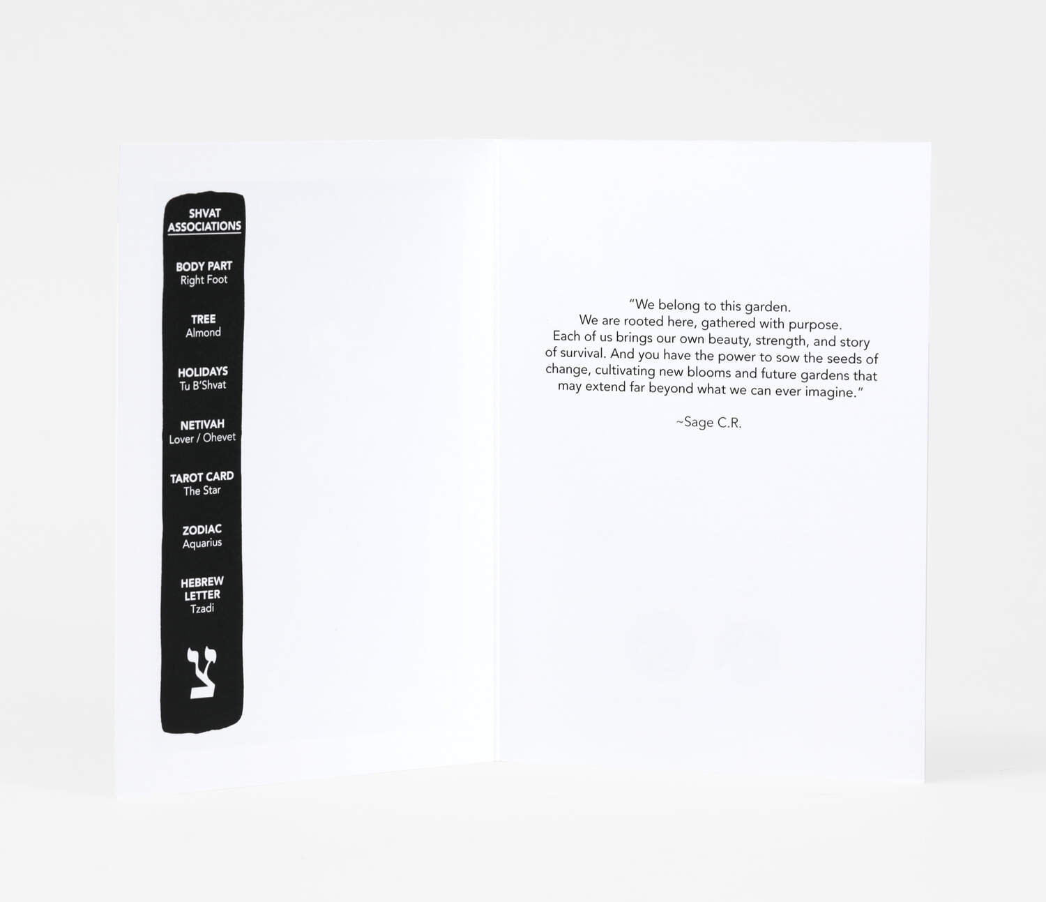 These beautiful cards include artwork from each month of the Dreaming the World to Come planner, along with quotes from Jewish ritualists, mystical associations for each month, and a powerful little ancient demon on the back of each card!