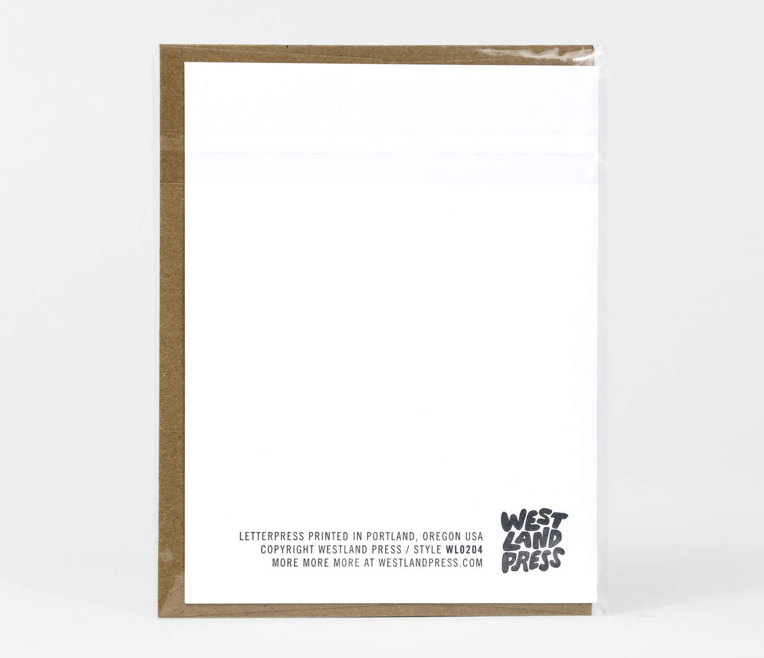 Folded notecard with kraft envelope, blank inside.