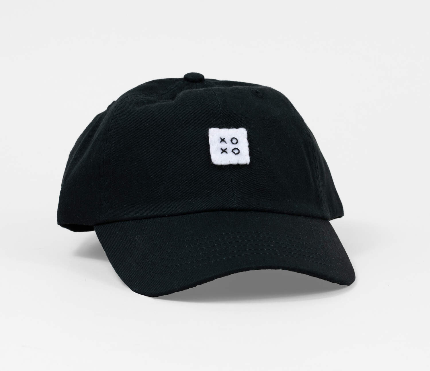 Limited edition black XOXO logo cap with white felt XOXO logo. Felt logo hand sewn by artist and friend of the festival Booky Margoof. Edition of 25.