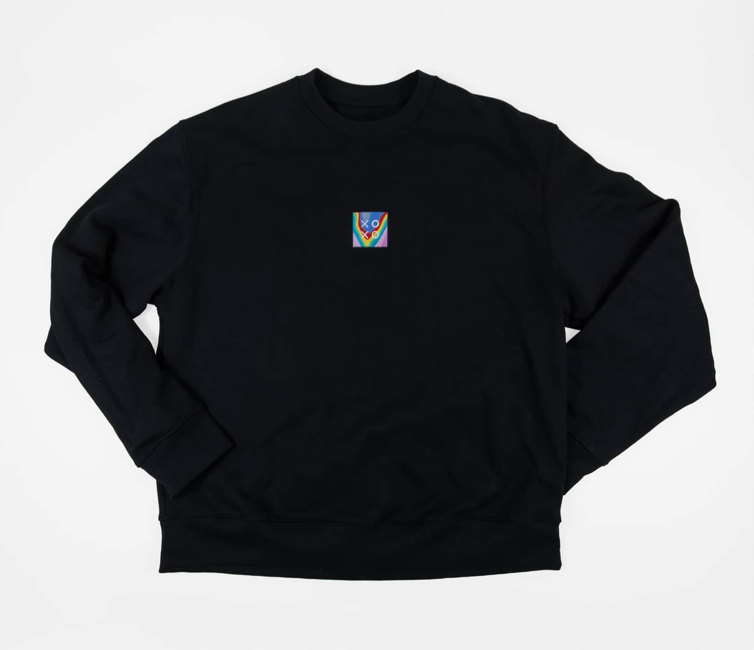 Embroidered on Bella + Canvas 4711 Unisex 10oz Heavyweight Crewneck black sweatshirts, available in sizes S to 4XL (view sizing info).